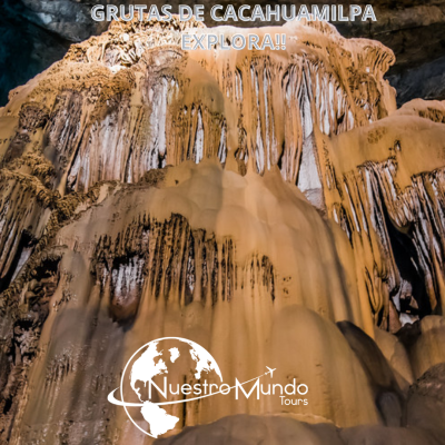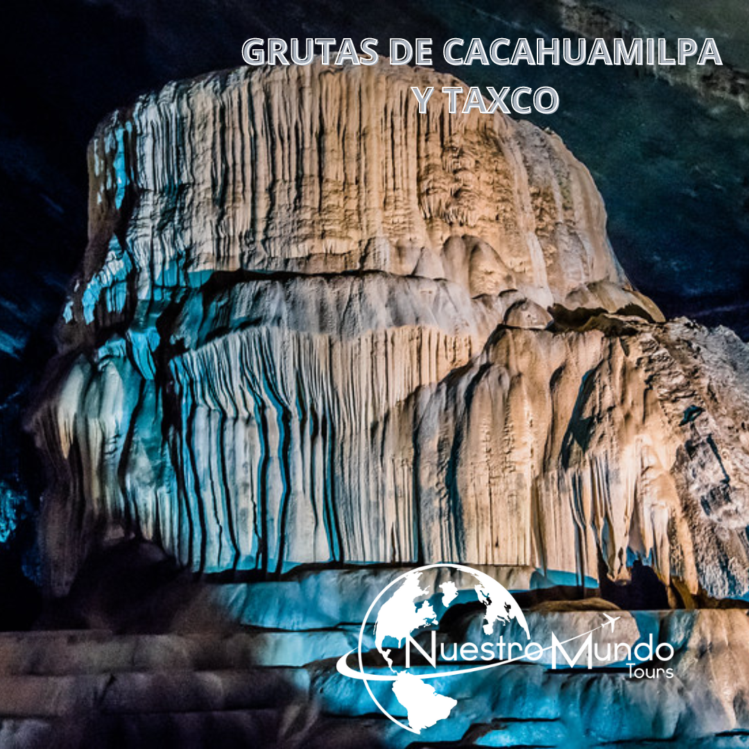 El tour nos conduce a las Grutas de Cacahuamilpa, donde conoceremos la estalactitas y las estalactitas, formadas por las filtraciones de agua, la cual es una maravilla natural.