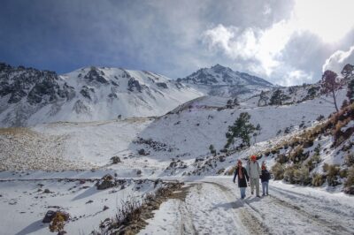 Nos dirigiremos con dirección a Toluca, para iniciar la caminata a un costado del refugio alpino para entrar al cráter donde veremos la vista de la laguna de la Luna y la laguna del Sol, luego entraremos al cráter para pasar a un costado de la laguna de la Luna para seguir rodeando la laguna del Sol.